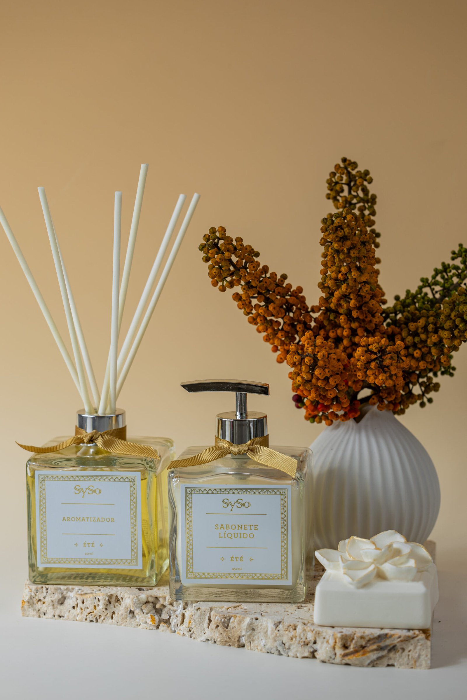 O Sabonete Líquido SySo reúne elegância, cuidado e perfume em um só produto. Sua fórmula com pH balanceado limpa suavemente sem ressecar a pele, proporcionando uma sensação de frescor e perfume duradouro. Além de funcional, o vidro elegante ajuda a compor a decoração do ambiente. Perfeito também para presentear.